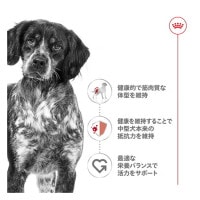 中型犬 成犬時の体重11から25kg 成犬用 生後12カ月齢以上 生後1歳以上 健康的で筋肉質な体型を維持 高品質のタンパク質配合 健康的な筋肉量の維持をサポート 健康を維持 抵抗力を維持 プレバイオティクス ビタミンC ビタミンE 抵抗力をサポート 活力をサポート 健康的な消化吸収