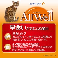 商品名 : AllWell オールウェル 早食いが気になる猫用 成猫用 750g チキン味挽き小魚とささみフリーズドライパウダー入り 国産 キャットフードドライフード ユニチャームペット 正規品