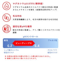 ●ストルバイト結石に配慮しマグネシウムを0.075%(標準値)に調整。さらに、メチオニン強化。(ビューティープロ キャット 成猫用比約20%アップ)