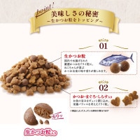 生かつおの美味しさそのまま入りのトッピング粒で、かつお本来の味や香りを楽しめるキャットフード