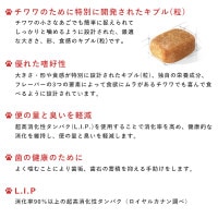 超高消化性タンパク(L.I.P.)を使用することで消化率を高め、健康的な消化を維持し、便の量と臭いを軽減します。